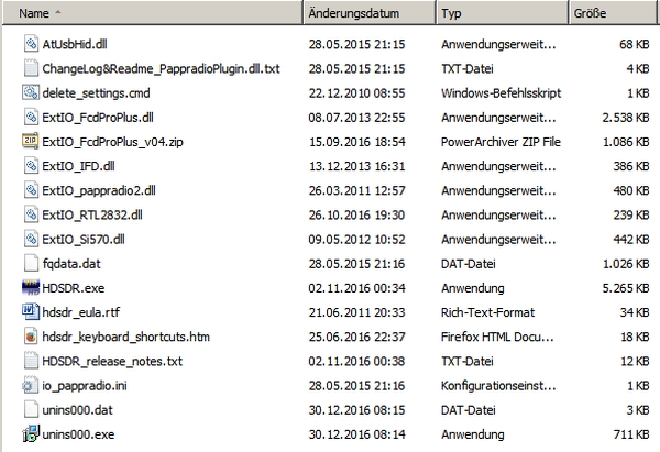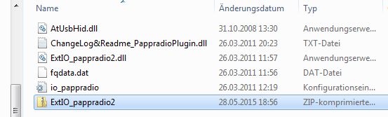 Pappradio: Der Inhalt der Datei ExtIO_pappradio2.zip muss vollständig in das HDSDR-Verzeichnis kopiert werden