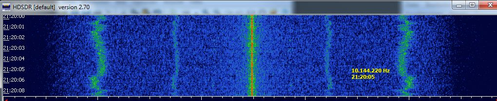 Die SDR haben gegenüber einem klassischen KW-Radio den Vorteil, dass sie einen großen Empfangsbereich, selbst bei den Einfachst-SDR-Empfängern wie dem Pappradio, verfügen und eine 48kHz breites Audiosignal darstellen können. SDR werden wegen dieser Eigenschaft zur Bandüberwachung eingesetzt, man kann auf einen Blick erkennen, in welchem Bereich Aktivitäten sind. Dieses "auf einen Blick erkennen" macht augenscheinlich, in welche Richtung sich das KW-Hören entwickelt hat: Aus einer ehemaligen Akustik-Disziplin ist eine Video-Disziplin geworden. Für unser Anliegen bedeutet diese Eigenschaft von SDR, dass man bspw. gleichzeitig sowohl JT65- als auch PSK-Signale empfangen lassen kann. Weil das Pappradio bei meinen Versuchen nur 48kHZ aufwies, war ich darauf angewiesen, dass die beiden Empfangsbereiche in einem Amateurfunkband innerhalb dieser Bandbreite zu fassen zu bekommen sind. Man muss dann nur zwei "Tricks" anwenden, um gleichzeitig z.B. JT65 und PSK31 mit einem einzigen SDR empfangen und dekodieren zu können: