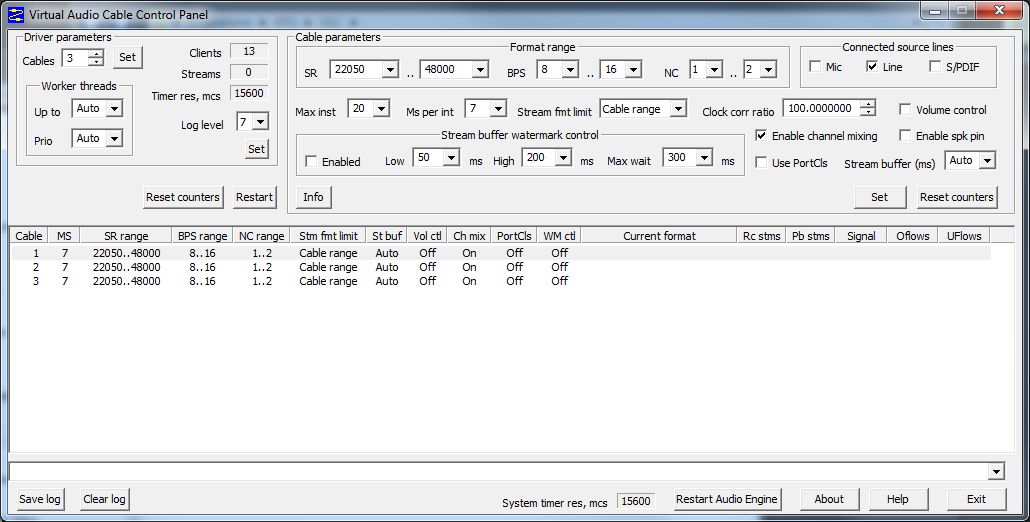 Im VAC-Verzeichnis das Programm "vcctlpan" starten, dann über "Set" (rechts halbhoch) zwei weitere Kanäle einstellen. Dabei darauf achten, dass rechts oben bei "Line" das Häkchen gesetzt ist. Mehr als drei Schnittstellen stellt die kostenlose Version nicht zur Verfügung.