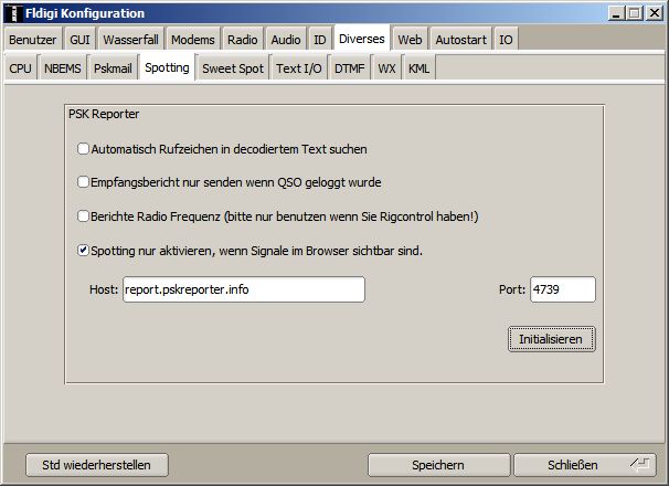 fldigi: Empfangsmeldungen dekodierter PSK-Sendungen an den PSK-Reporter schicken
