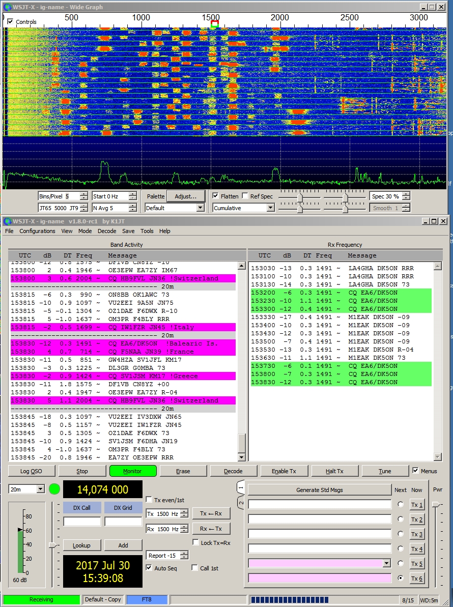 WSJT-X: FT8-Mode im 20m-Amateurfunkband
