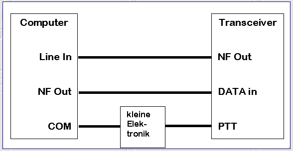 Sobald das Interface-Problem gelöst ist, kann der aktive Datenfunk beginnen. Der nachfolgende Text geht davon aus, dass ein PTT-Interface eingesetzt wird und dass die Programme entsprechend auf diesen Interface-Typ "PTT" konfiguriert werden.
