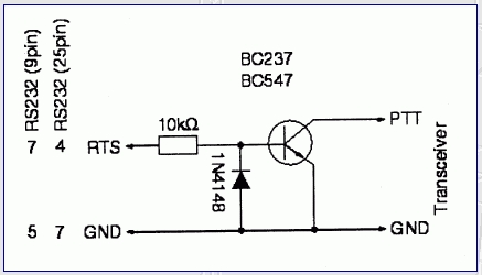 Bei der PTT-Steuerung muss man die Signalbelegung des Mikrofoneingangs des Funkgeräts ermitteln. Wenn man diese Signalbelegung kennt, kann man ein Interface bauen oder kaufen, das dafür sorgt, dass am Mikrofoneingang ein PIN entweder eine bestimmte Spannung bekommt oder genau keine. Diese PIN-Spannung sorgt dafür, dass das Funkgerät in den Sendemodus übergeht.