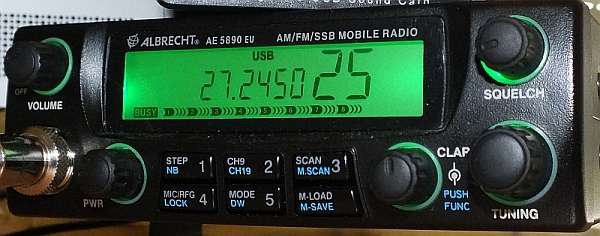 Wechseln Sie auf Kanal 25/USB, hören Sie eine Weile in den Funkverkehr, ob Digitalfunk-Sendungen in diesem Kanal stattfinden. Drehen Sie die Sendeenergie hoch auf halbe Stellung (das ist meist schon volle Leistung).