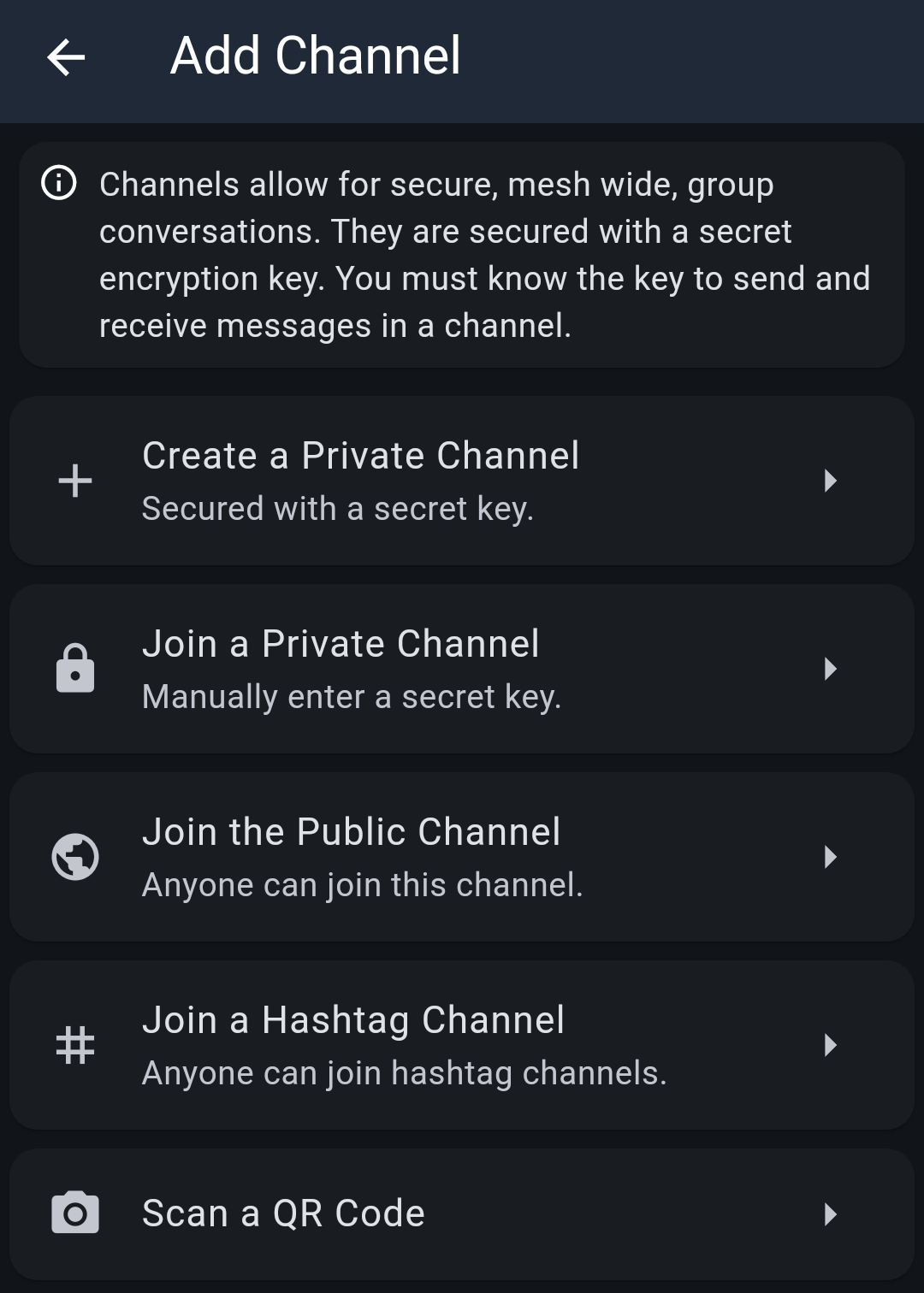 Unter "Settings/Notification Settings" kann man einstellen, ob man vom Handy im Falle neuer Meshcore-Nachrichten benachrichtigt werden möchte. Klar, beim Eintreffen von Nachrichten an mich will ich das, so wie bei anderen Messengern auf meinem Handy auch. Allerdings sollte man überlegen, ob man auch bei jeder Channel-Nachricht benachrichtigt werden möchte, was bei "Public"-Nachrichten im städtischen Umfeld meist nur am Beginn der Beschäftigung mit Meshcore interessant ist. Bei ernsthafter Nutzung von Meshcore tatsächlich anhaltend interessant können Nachrichten sein, die in "rooms" (Mailboxen) hinterlegt werden, in denen man selbst eine Nachricht hinterlegt hat.
